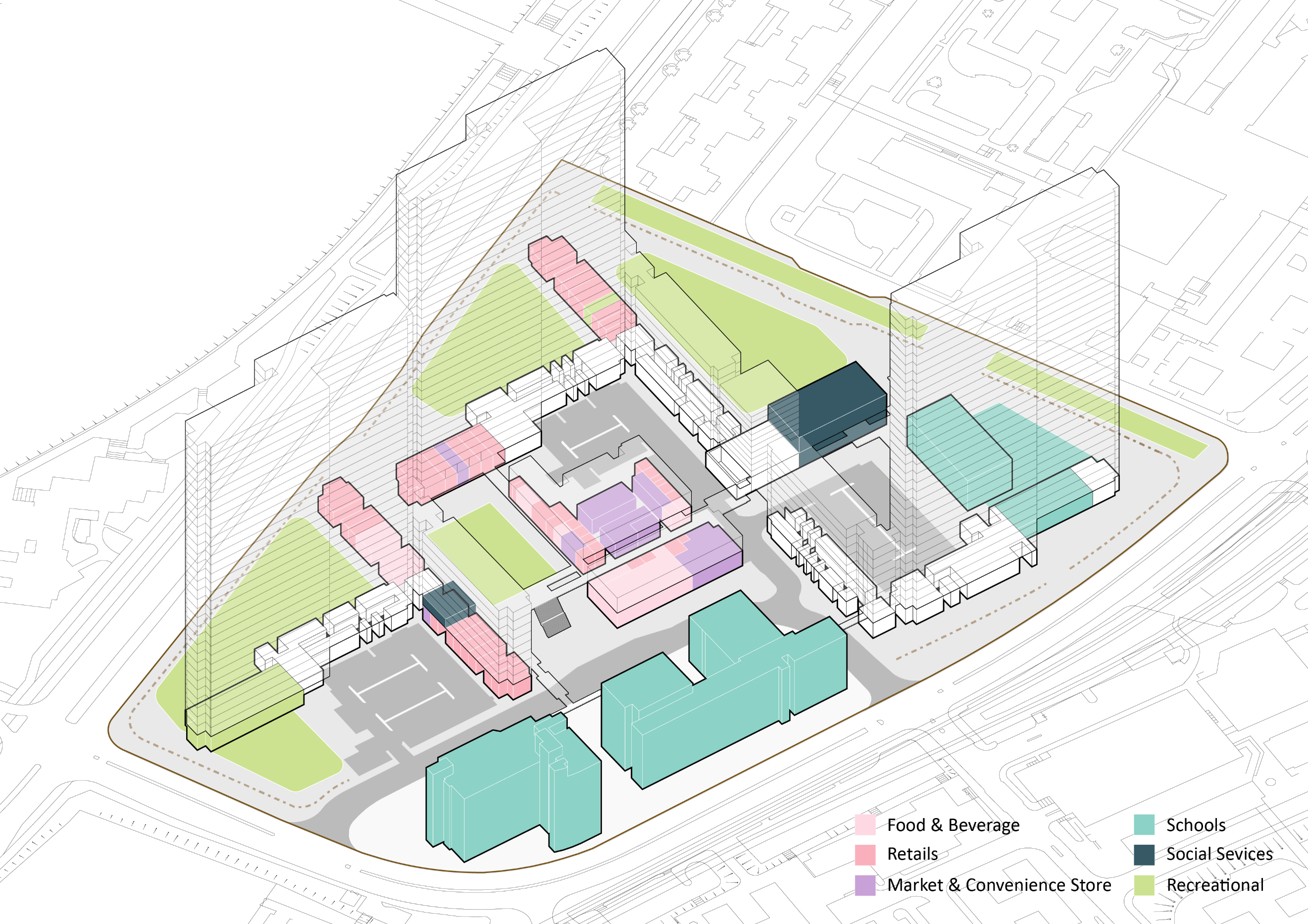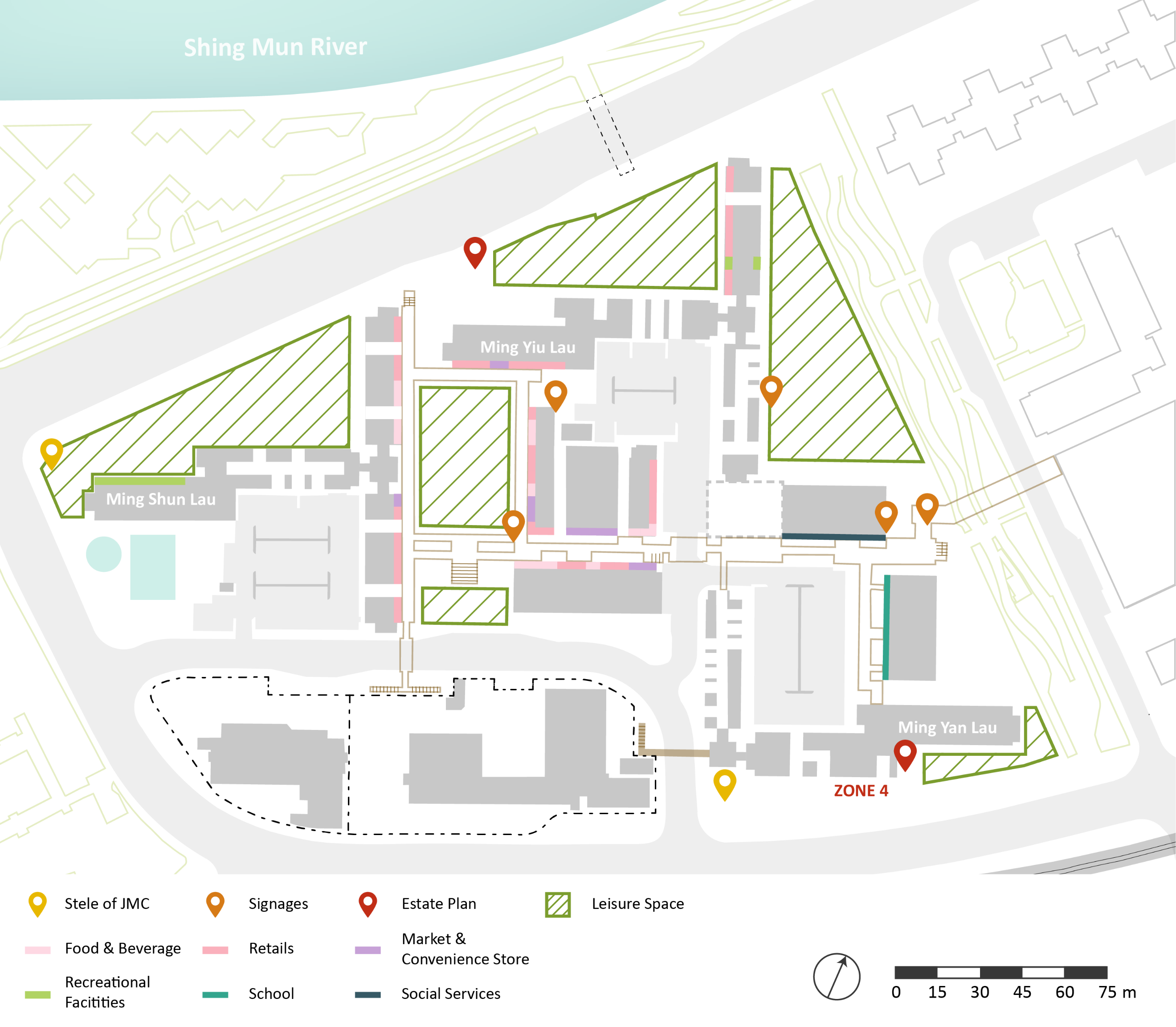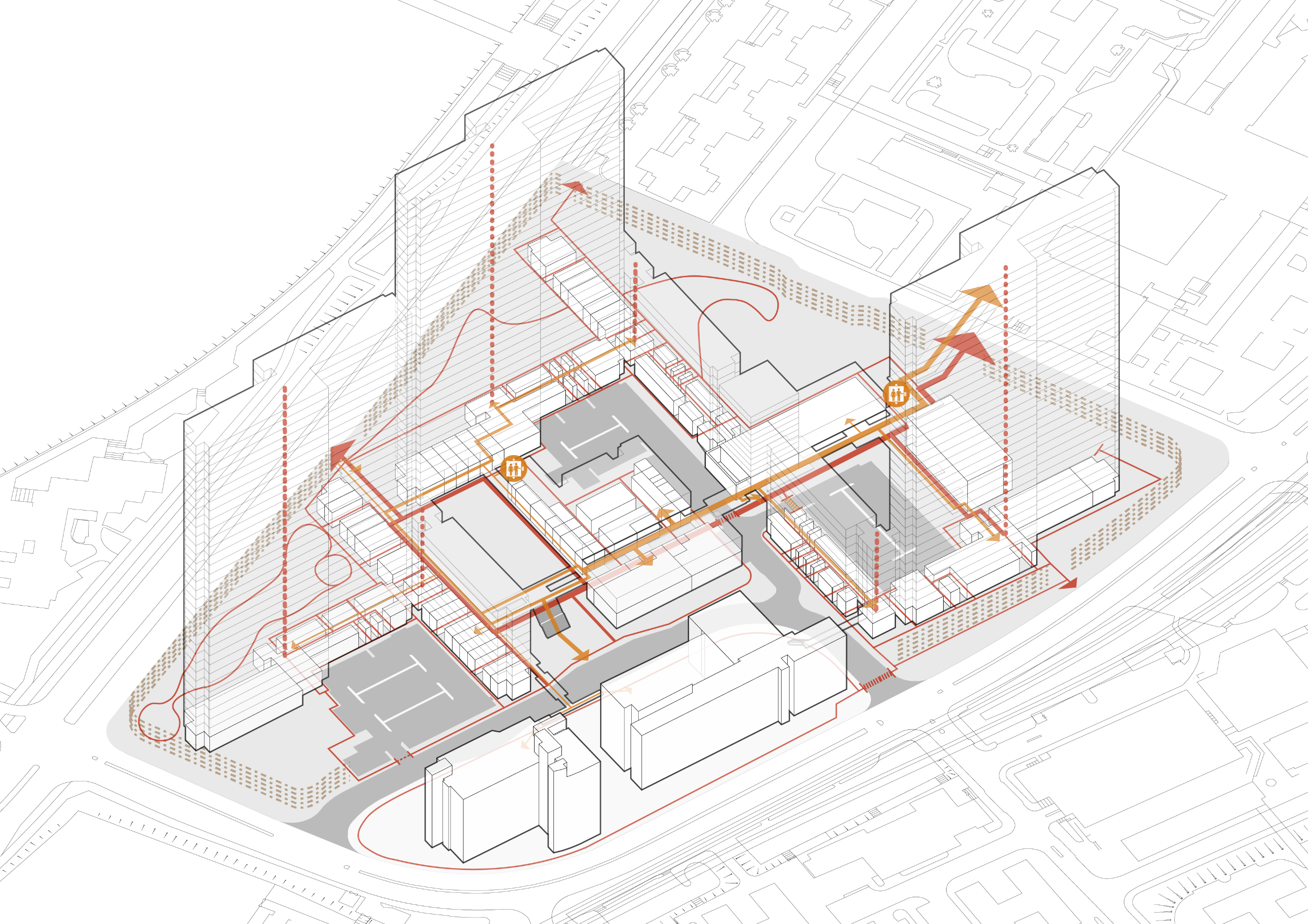 Figure 3. Ground level and elevated pedestrian network in Jat Min Chuen