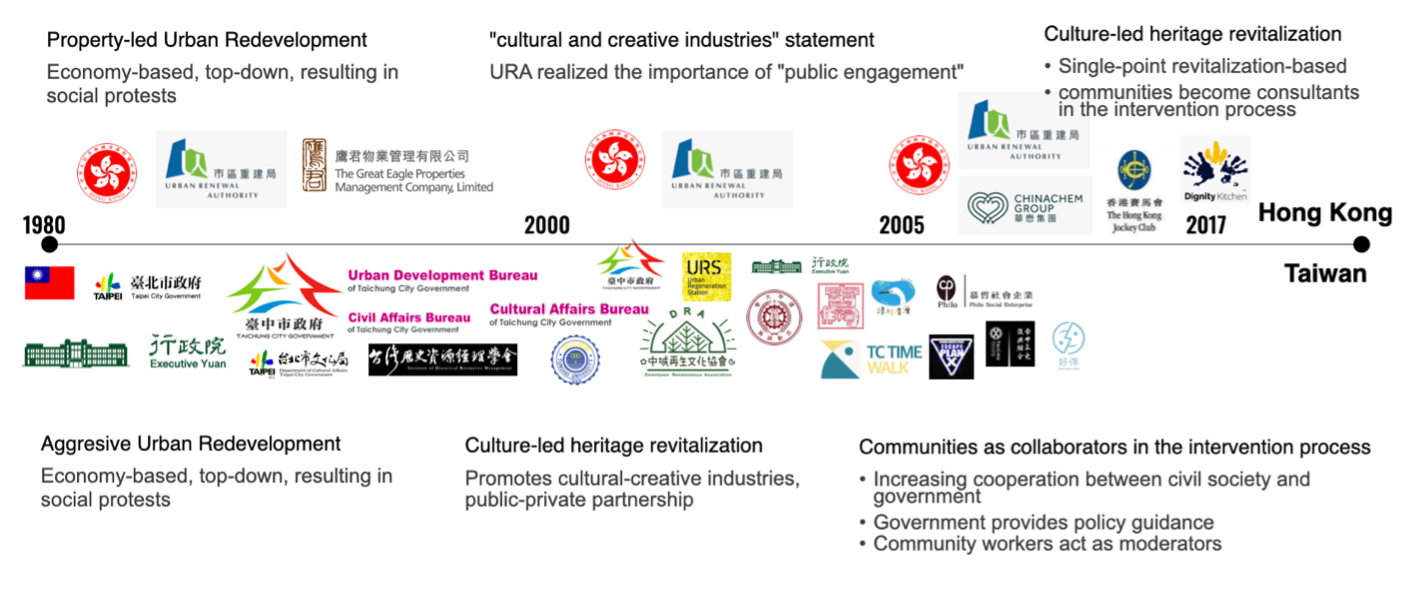 Figure 6. Timeline of the urban intervention policy process in Hong Kong and Taiwan