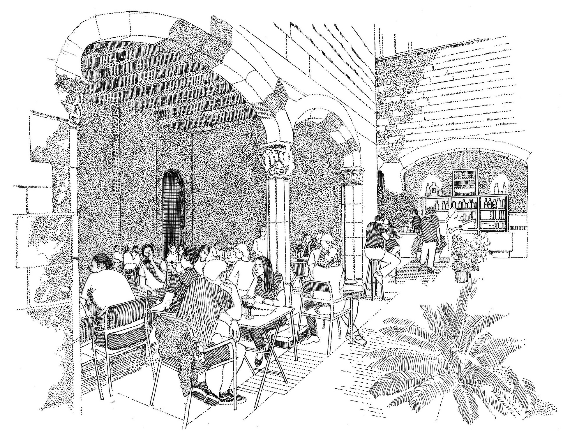 The inner courtyard of the old Hospital de la Santa Creu which dates to 1401 houses a café in one of its cloisters amidst groves of orange trees, and now houses the Biblioteca de Catalunya and he Institut d’Estudis Catalans (source: Author).