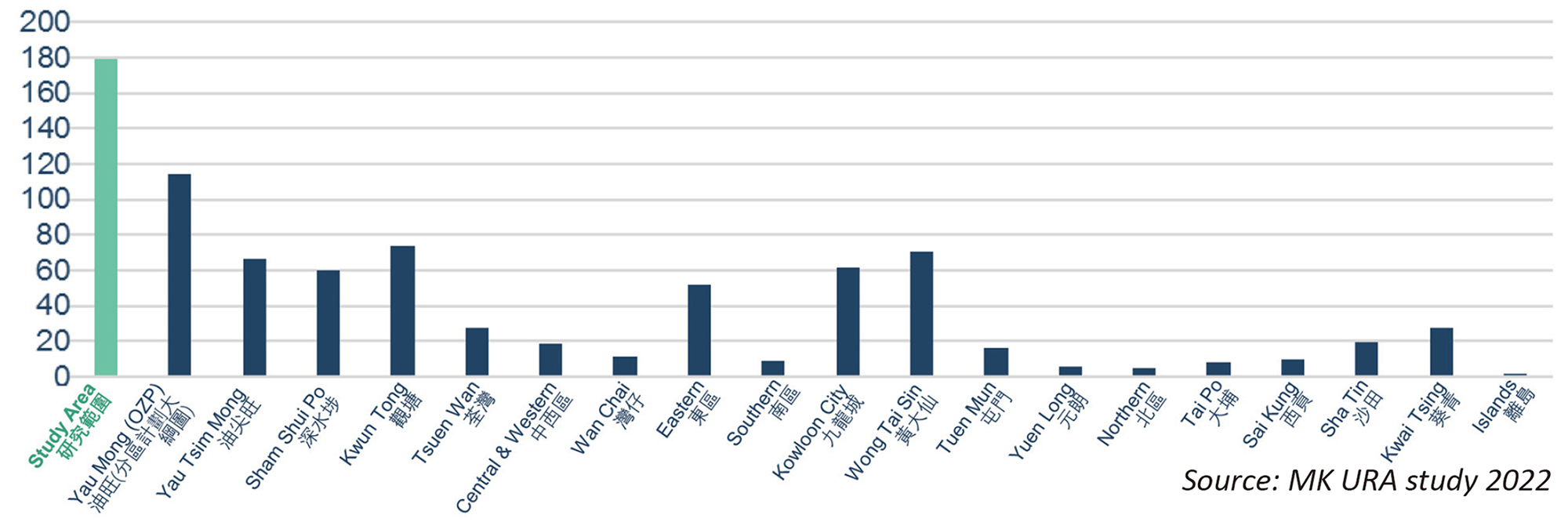 Figure 3. Population density(person/1000sqm) (Source: URA, 2022)